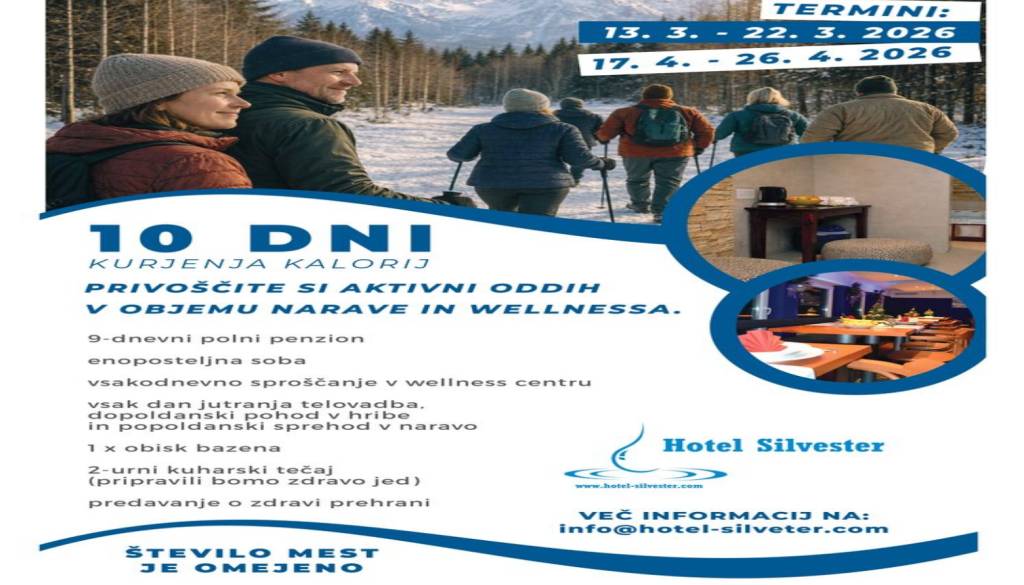 Vabljeni na aktivni oddih v objemu narave in wellnessa, kjer boste združili gibanje, sprostitev in skrb za zdravo življenje. Program »10 dni kurjenja kalorij« ponuja popolno priložnost za vse, ki si želijo izboljšati telesno pripravljenost, uživati v naravi ter se hkrati razvajati v prijetnem hotelskem okolju.