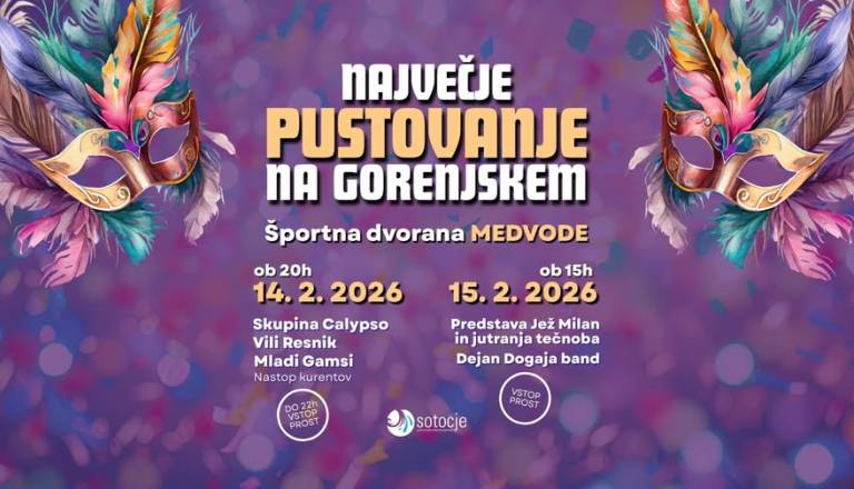 Dvorana Adergas, Cerklje na GorenjskemVsi, stari in mladi, vabljeni na tradicionalni 35. Pustni živ žav v kulturno dvorano v Adergasu. Pridite, bomo malo norčavi!