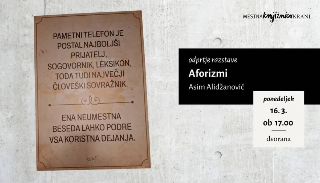 Mestna knjižnica KranjRazstava ponuja vpogled v duhovit in pronicljiv svet misli kranjskega avtorja Asima Alidžanovića, tudi občinskega nagrajenca 2024 in veterana RS.