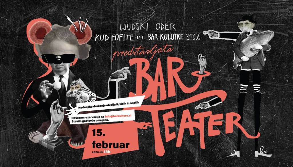 BarKulture 313,6, MedvodeKUD Fofité in Bar kulture 313,6 vas vabita na nedeljsko druženje ob vicih, šalah in skečih. Vstopnina vključuje pijačo dobrodošlice. Obvezne rezervacije na [email protected]