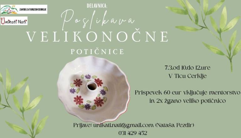 Delavnica: Poslikava velikonočne potičnice Potičnica ni le posoda, temveč osrednji del velikonočne mize. Na ustvarjalni delavnici boste svoji praznični peki ...