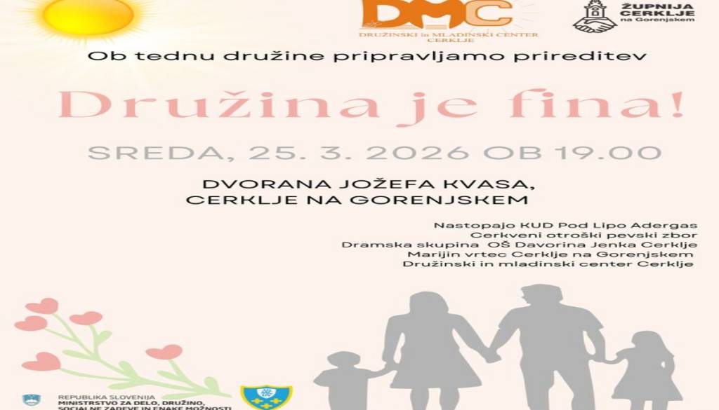 Društvo družinski in mladinski center Cerklje, Cerklje na GorenjskemToplo vabljeni na dogodek Družina je fina!, kjer bomo proslavili naše družine.