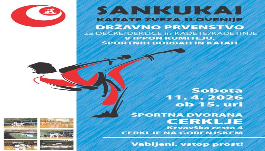 Sankukai karate zveza Slovenije organizira državno prvenstvo za dečke in deklice ter kadete in kadetinje v ippon kumiteju, športnih borbah in katah.