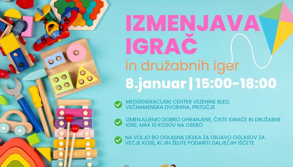 Medgeneracijski center Vezenine BledVabimo vas na izmenjavo otroških igrač in družabnih iger. Poleg tega, da se bo v otroški sobi naredil