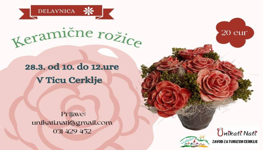 TIC Cerklje na Gorenjskem, Krvavška cesta 1b, 4207 Cerklje na GorenjskemDelavnica: Keramične rožice