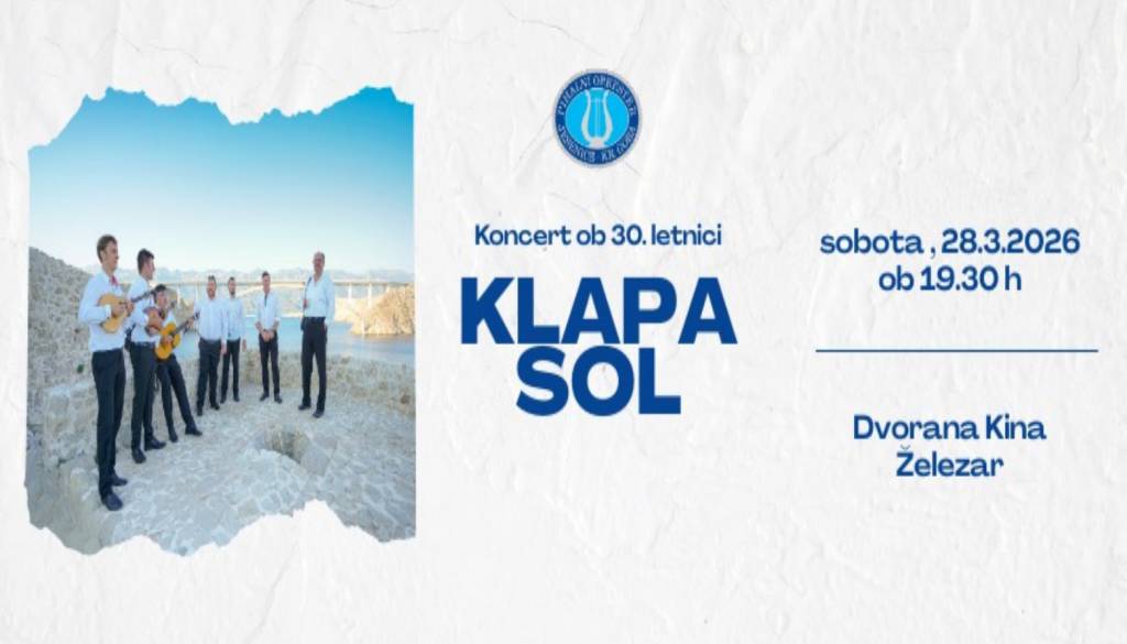 Klapa Sol pripravlja poseben koncertni večer, na katerem bodo zazvenele skladbe, ki nas ponesejo na kamnite obale, v ozke dalmatinske ulice in kanček morja prinašajo tudi med gorenjske hribe.🌊