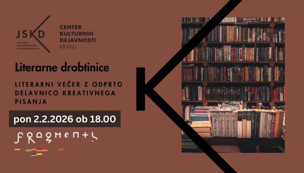 Fragmenti Kranj - books & coffeeLiterarne drobtinice so skupni projekt CKD Kranj, JSKD OI Kranj in Zavoda Fragmenti. Nastale so z idejo, da redne celoletne delavnice Centra kulturnih dejavnosti Kranj enkrat na tri tedne postanejo javne in dostopne tudi tistim, ki bi se v pisanju želeli preizkusiti zgolj občasno ali prvič.