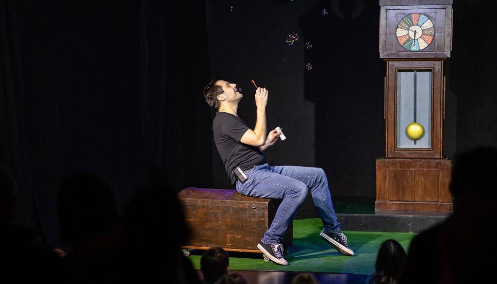 Stopimo skupaj v svet otroške igre in milnih mehurčkov, kjer se rimani besedi, vrhunskemu pripovedništvu in simpatičnim lutkam pridružuje tudi avtorska glasba priznanega skladatelja Marjana Peternela, ki je ustvaril čudovito glasbeno podobo in uglasbil pesmice, ki jih igralec v predstavi odpoje.