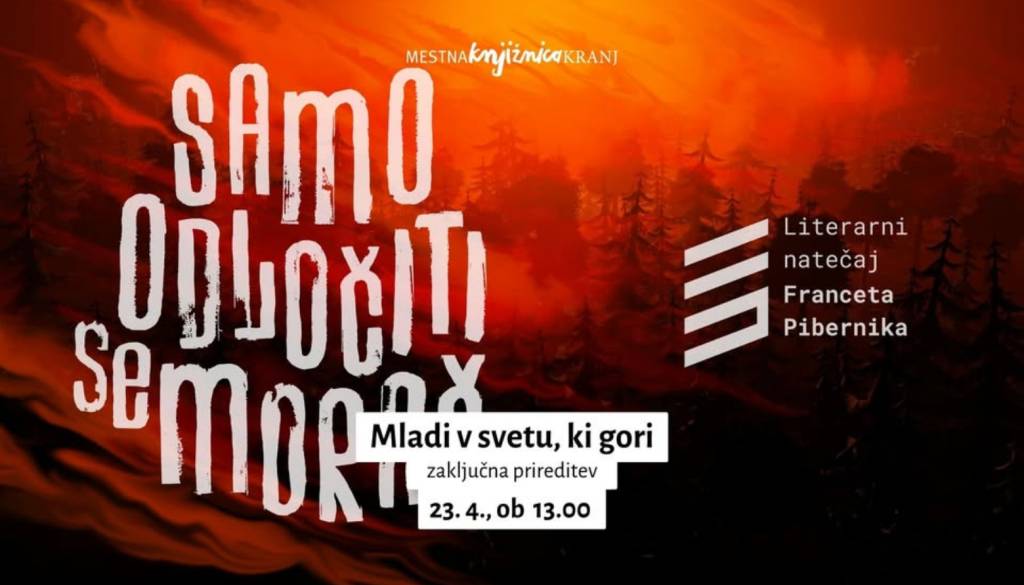 Mestna knjižnica KranjNa svetovni dan knjige in avtorskih pravic bomo slovesno zaključili Literarni natečaj Franceta Pibernika, ki je v letu 2025 doživel svojo četrto izdajo. K sodelovanju smo povabili gorenjske srednješolke in srednješolce ter jih nagovorili, da nam predstavijo svojo refleksijo na svet, ki se, tudi z našo pomočjo, razkraja, kar pred nami. Tako je vsaj videti. Bivanjski prostor je postal prepreden z družbenimi težavami in nesoglasji, ki pogosto generirajo v spopade, tehnološki izzivi si sledijo z vrtoglavo hitrostjo, vse skupaj pa uokvirjajo okoljske krize, na katere kar nekako ne znamo vplivati.