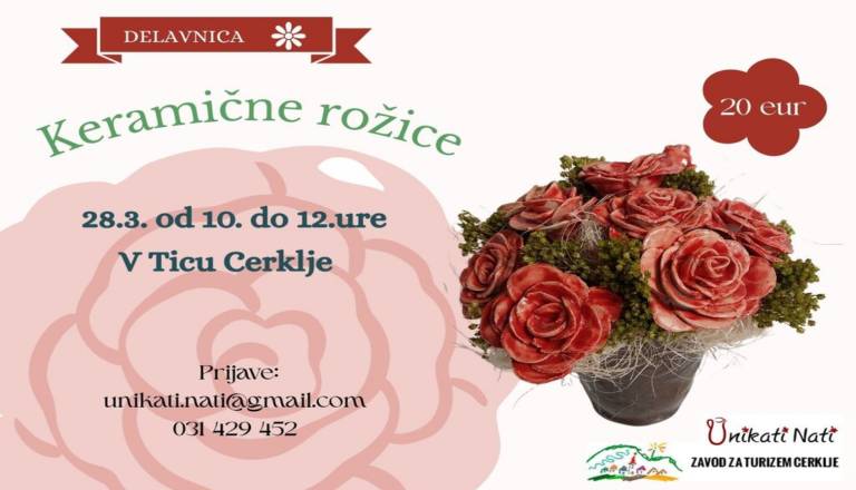 Vabljeni na sproščeno ustvarjalno delavnico, na kateri bomo iz bele valjane gline izdelovali nežne, unikatne obeske za velikonočne aranžmaje. Oblikovali bomo praznične motive, jih dopolnili z odtisi čipk in štampiljk ter izrezovali z modelčki v obliki pirhov, zajčkov in drugih živali. Izdelke bomo nato pobarvali in okrasili z engobami.