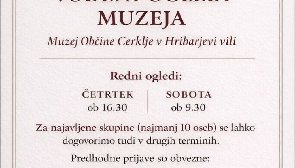 Muzej Občine Cerklje v Hribarjevi vili, Cerklje na GorenjskemVodeni ogledi Muzeja Občine Cerklje na Gorenjskem v Hribarjevi vili