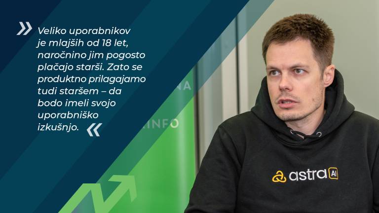 Pomembno mi je tudi, da delaš nekaj, kar ima dober vpliv na svet, da mladim pomagaš do boljših priložnosti. To je bila osnovna filozofija že pri Astra.si: vsebine sem dal brezplačno. Tudi pri Astra AI to nadaljujemo: tistim, ki si ne morejo privoščiti dostopa, ga damo brezplačno, če nam pišejo. Tega etosa se držimo.«