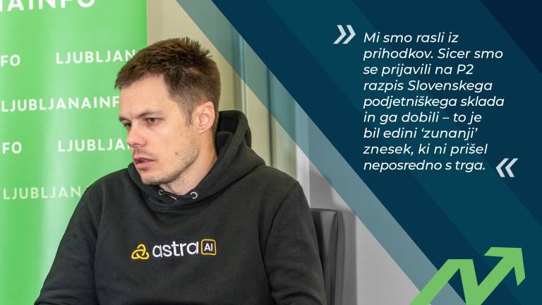 Mi smo rasli iz prihodkov. Sicer smo se prijavili na P2 razpis Slovenskega podjetniškega sklada in ga dobili – to je bil edini 'zunanji' znesek, ki ni prišel neposredno s trga. Vse ostalo je financirano sproti iz prodaje.«