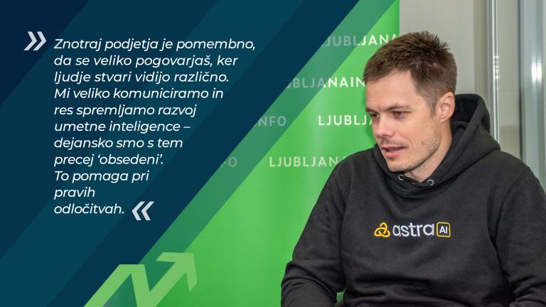 Znotraj podjetja je pomembno, da se veliko pogovarjaš, ker ljudje stvari vidijo različno. Mi veliko komuniciramo in res spremljamo razvoj umetne inteligence – dejansko smo s tem precej 'obsedeni'. To pomaga pri pravih odločitvah.«