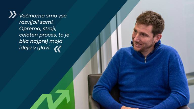 »Večinoma smo vse razvijali sami. Oprema, stroji, celoten proces, to je bila najprej moja ideja v glavi. Potem pa sodelujemo s podjetji, ki se ukvarjajo s strojništvom, avtomatizacijo in kontrolnimi sistemi za kakovost. Oni nam nato izdelajo, kar potrebujemo.«