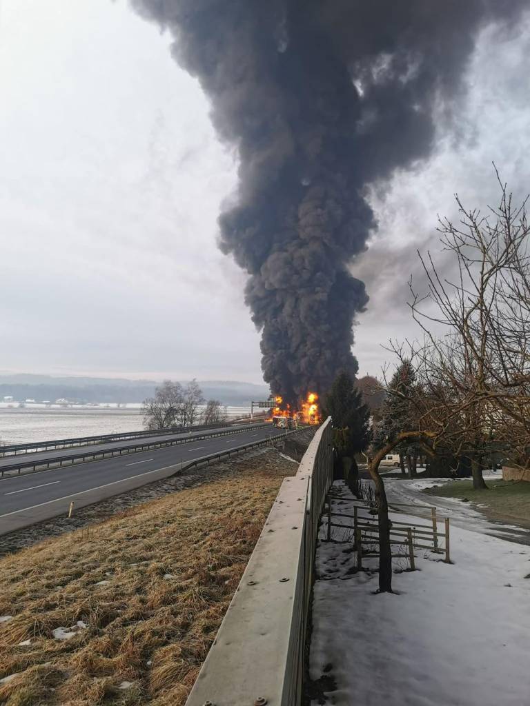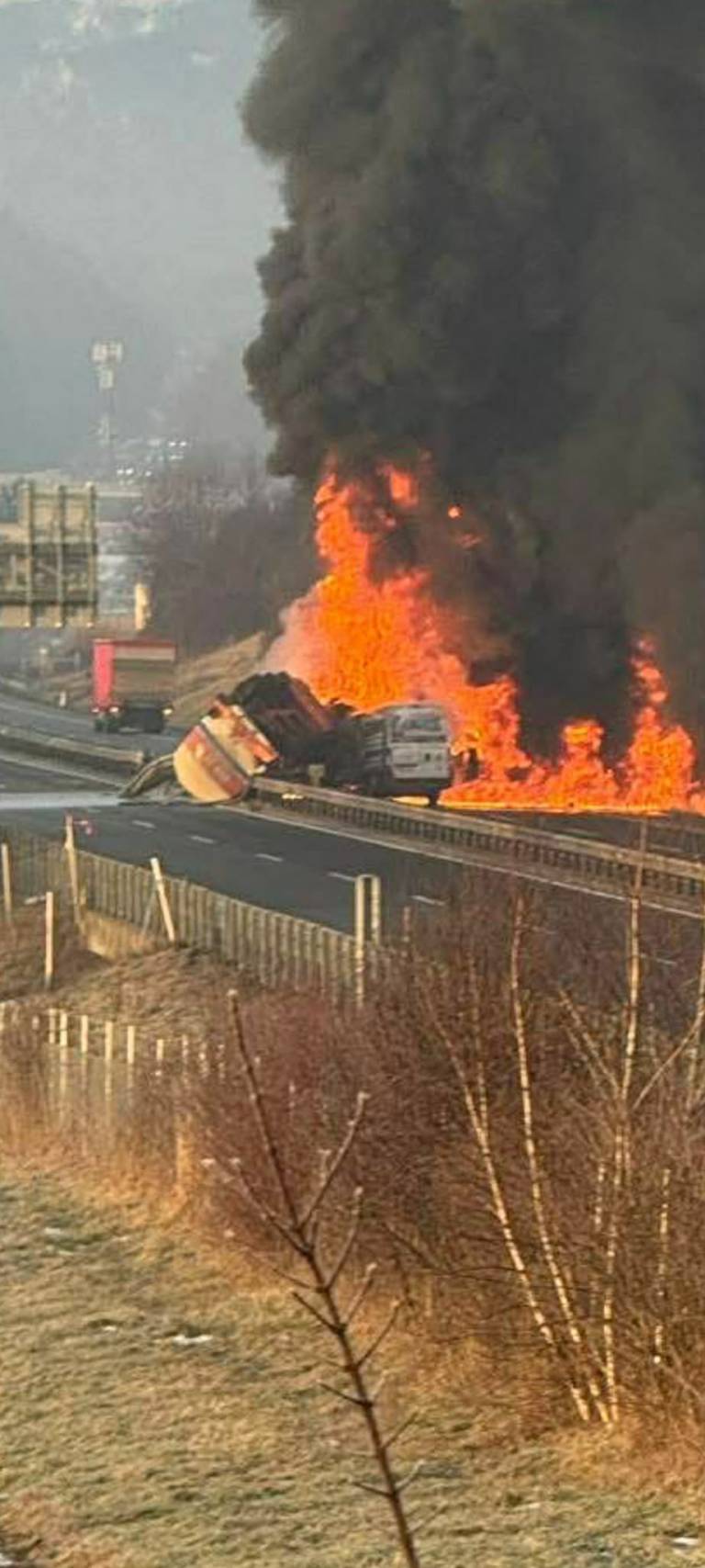 Po prvih informacijah sta v nesreči udeležena kombi in Petrolova cisterna, vozili gorita, na kraju še poteka gasilska intervencija.