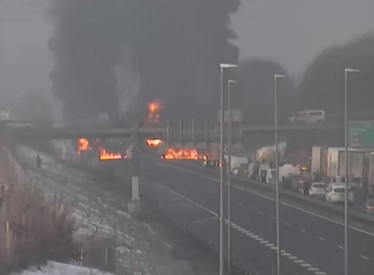 »Viden je večji požar in razbitine,« poroča Zavod Reševalni pas.
