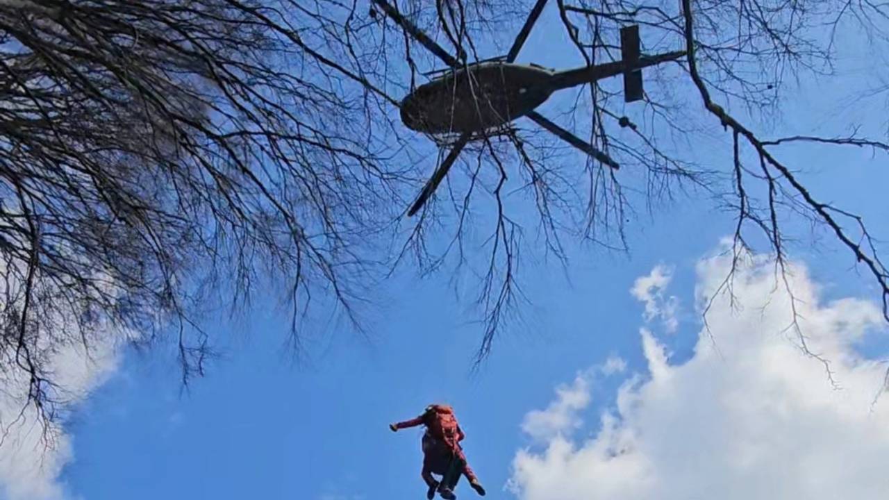 Poškodovanega pohodnika so s helikopterjem Slovenske vojske prepeljali v Splošno bolnišnico Jesenice.