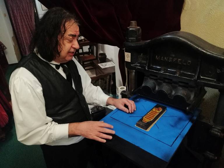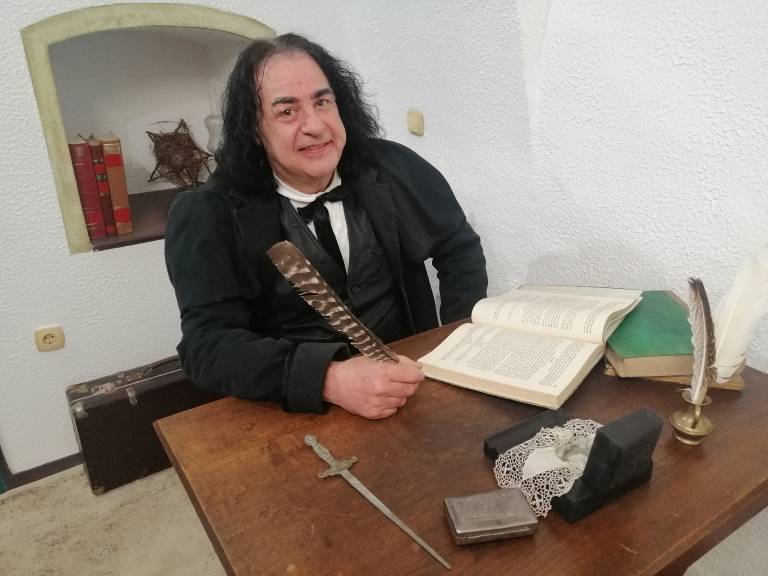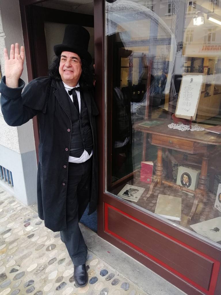 Kranjski Prešeren, ki ga Bojan Bešter neverjetno avtentično upodablja že četrt stoletja, še preden je nastal t. i. Prešernov smenj, ki se dogaja ob vsakoletnem prazniku slovenske kulture, nas je popeljal v svoje prostore in nam pokazal, kaj vse lahko obiskovalci tam vidijo, podoživijo in se tako vrnejo v 19. stoletje.