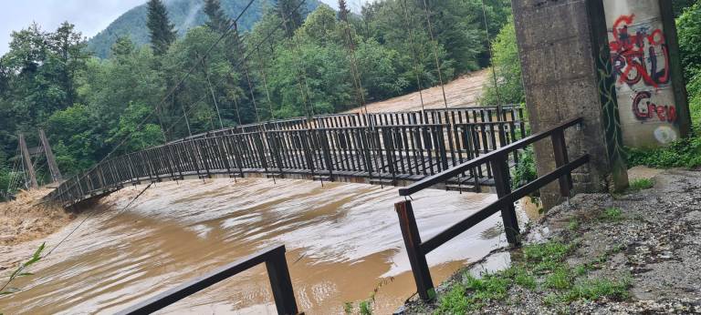 Pavle pa je s fotografijo, ki jo lahko vidite med besedilom, pokazal, kako žalostno je zaradi narasle vode, končala prejšnja brv.