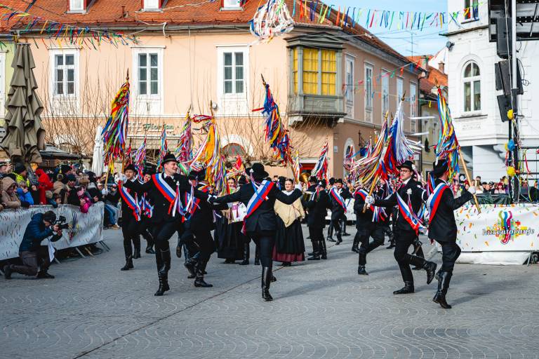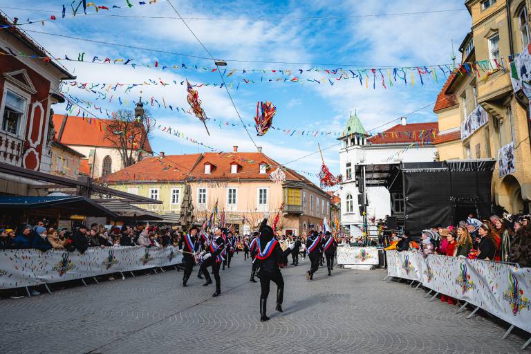 Množice ob trasi povorke že spremljajo prve nastope, slišati je zvonce, glasbo in vzklike podpore, medtem ko se sprevod vije skozi mesto. Dogajanje se bo po zaključku povorke nadaljevalo pred Mestno hišo, kjer bo za zabavo poskrbel Karneval band.