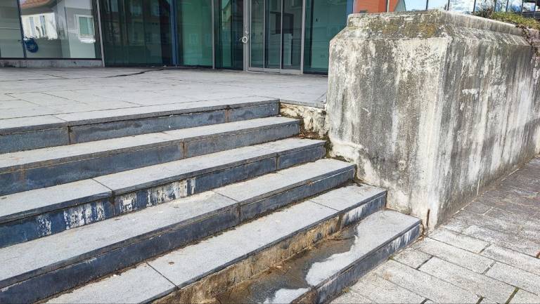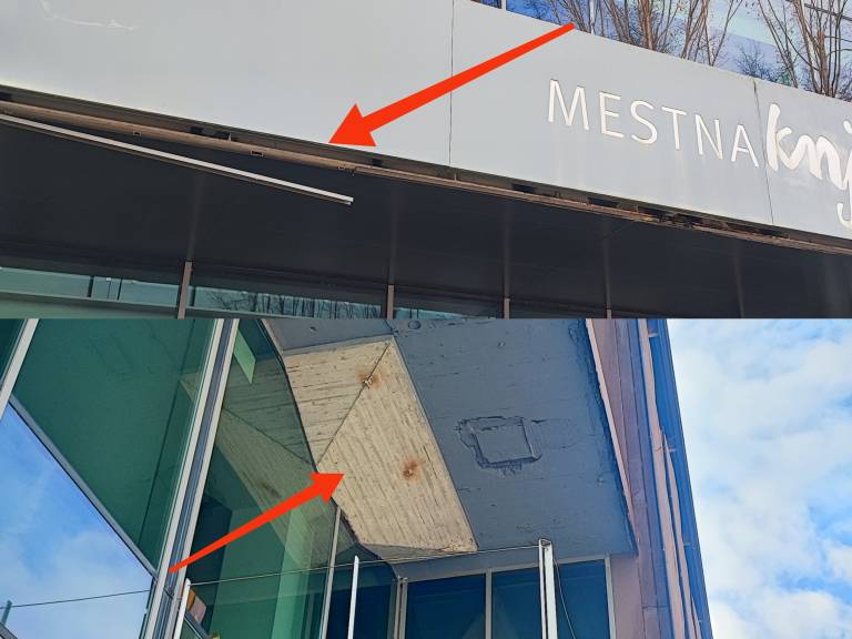 Po njegovih navedbah naj bi pod napisom Mestna knjižnica Kranj iz fasade oziroma konstrukcije štrlel del, ki bi lahko predstavljal nevarnost za mimoidoče.