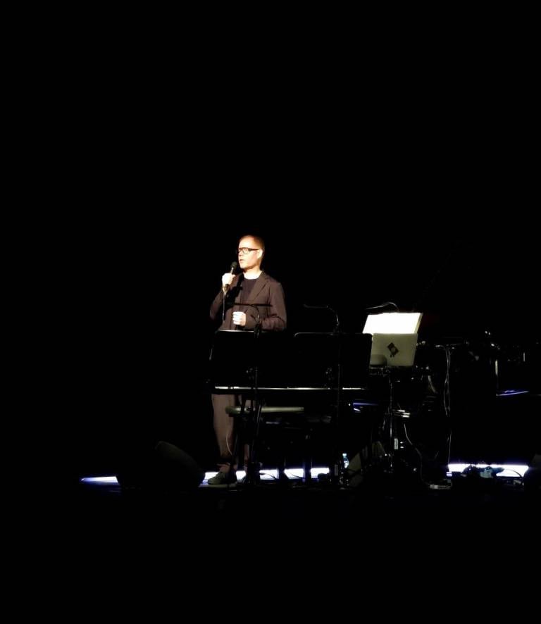 Ko je skladatelj stopil na oder, ga je dvorana pozdravila z dolgim aplavzom. Med koncertom skoraj ni govoril, kar je le še poudarilo, da je bil v ospredju predvsem zvok, zaradi katerega so se obiskovalci sploh zbrali.