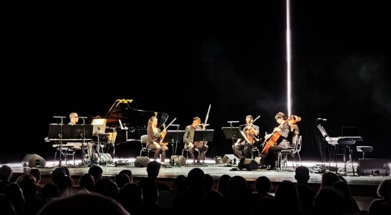 Koncert ni potekal v običajnem koncertnem ritmu, kjer skladbam sledijo aplavzi. Glasba se je prelivala skoraj neprekinjeno. Živo izvedbo godalnega ansambla so dopolnjevali elektronski posnetki, kar je ustvarjalo občutek enotnega zvočnega toka.