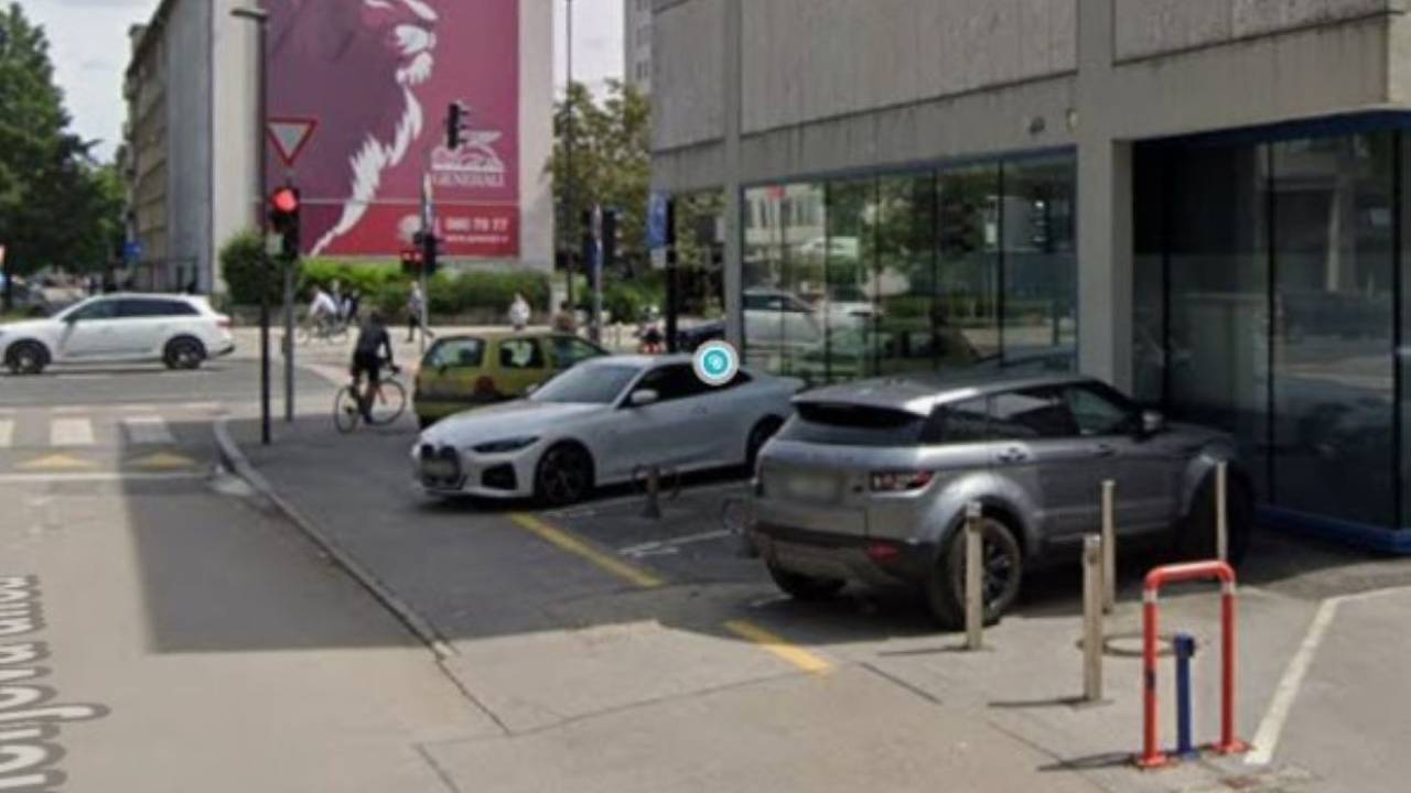 Na fotografijah, ki so jih posredovali bralci, je viden bel avtomobil, ki delno sega do roba pločnika, ter rumen avtomobil, parkiran izven označenih parkirnih mest.