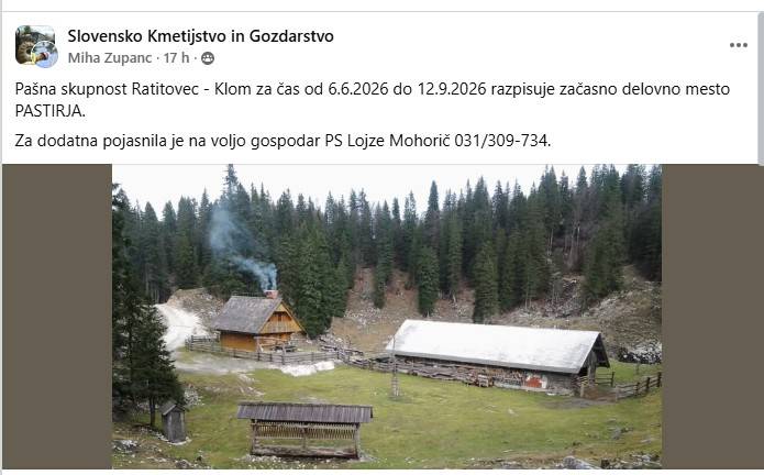 Za dodatne informacije o razpisanem delovnem mestu je na voljo Lojze Mohorič, predstavnik Pašne skupnosti Ratitovec - Klom.
