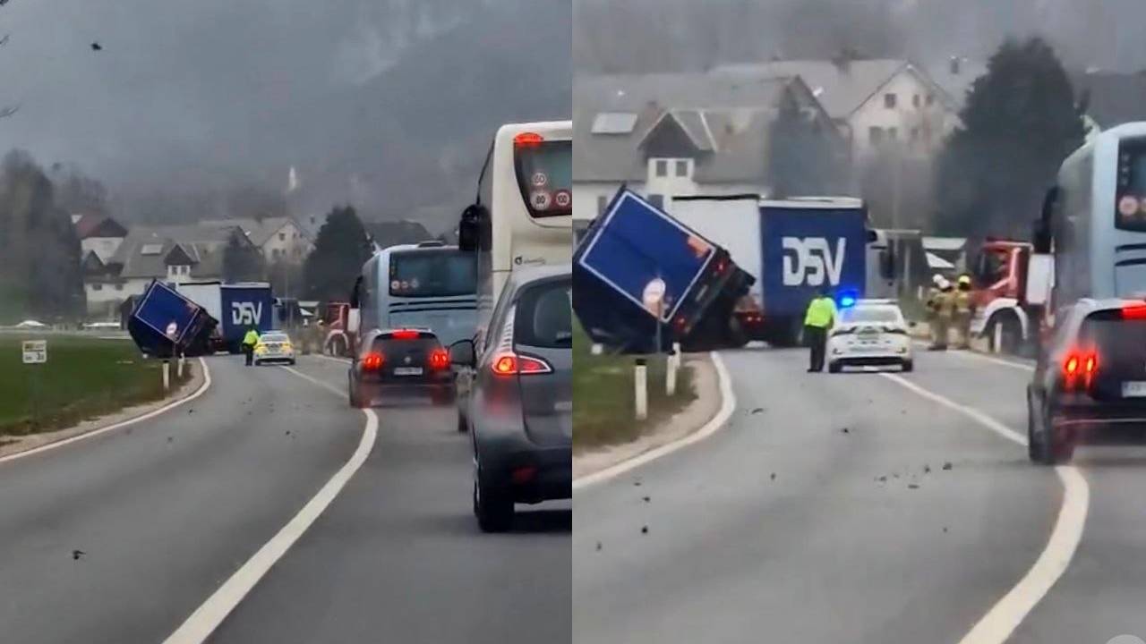 Tokrat pa veter resno nevarnost povzroča na Gorenjskem. Po poročanju uporabnikov družbenih omrežij je pri Vrbi prevrnilo tovornjak oziroma njegovo prikolico.