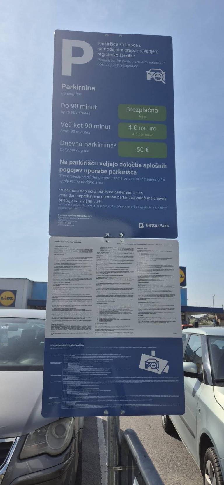 Po objavljenih informacijah je prvih 90 minut parkiranja brezplačnih, nato pa vsaka dodatna ura stane štiri evre. Če parkirnina ni poravnana še isti dan, naj bi uporabnik prejel položnico v višini 50 evrov.