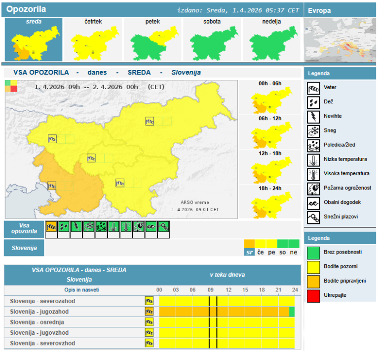 Jutranje temperature bodo od tri do sedem stopinj Celzija, na Primorskem do deset stopinj Celzija, v alpskih dolinah pa lahko padejo malo pod ničlo.