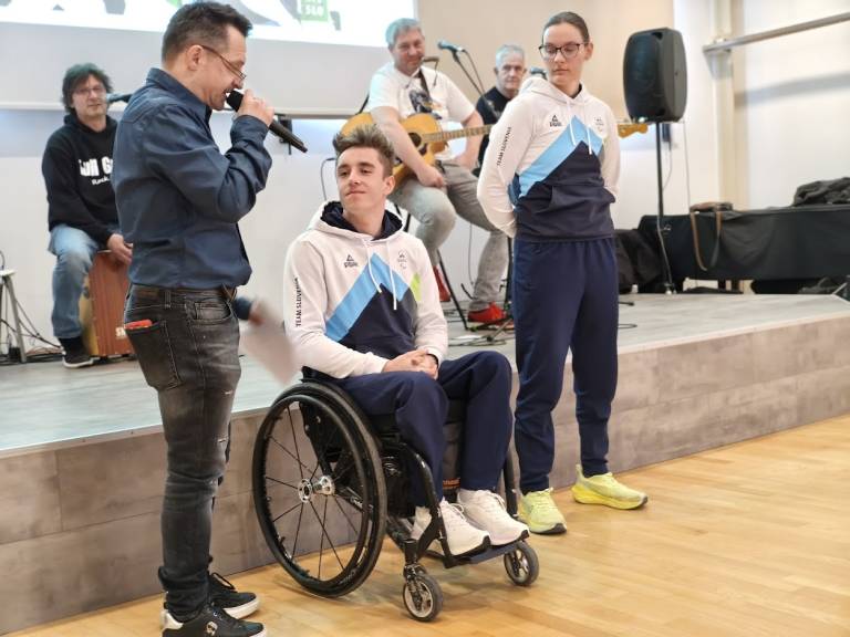 V ponedeljek je bila v dvorani Kolpern na Stari Savi na Jesenicah prava športna slovesnost. Občina je pripravila sprejem za paraolimpijca, 21-letno Tabeo Dolžan iz Gozda Martuljka in 25-letnega Jerneja Slivnika s Hrušice.