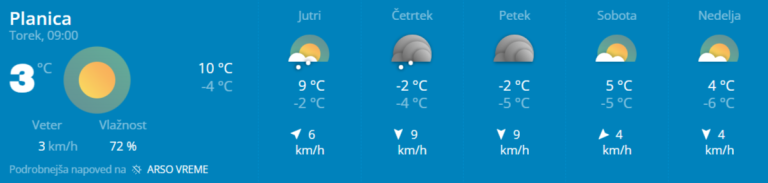 Ob tem bo sledila tudi občutna ohladitev. Medtem ko bodo temperature v sredo še lahko presegle deset stopinj Celzija, bodo v četrtek in petek čez dan dosegle le okoli eno do dve stopinji. Ponoči se bodo spustile do približno minus tri stopinje.