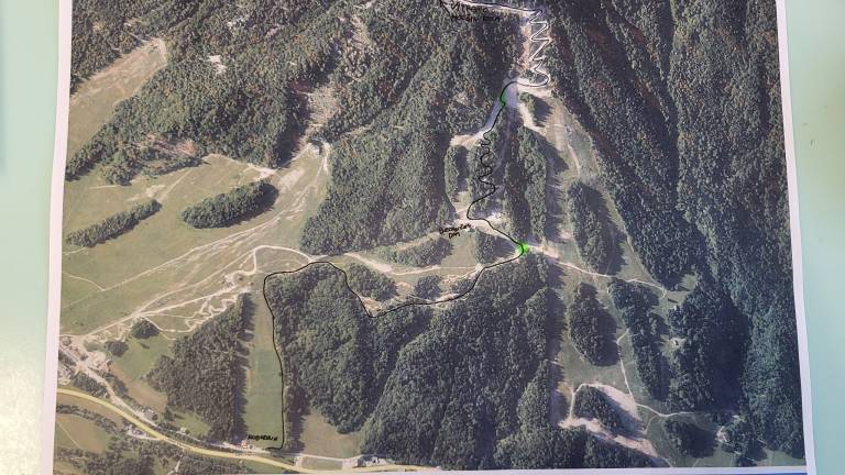 Na Facebooku ob tem Darja opozarja na del trase, kjer se po priloženi skici smer vzpona približa razcepu dveh smučarskih prog.