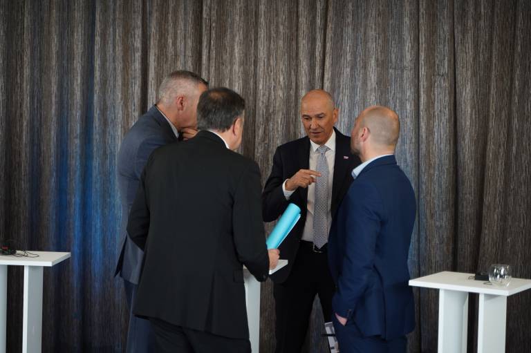 Preden so se prižgale kamere in se je razprava začela, je bilo na prizorišču živahno. Sogovorniki so prihajali eden za drugim, ekipa je že od zgodnjih jutranjih ur pripravljala studio, v zakulisju pa so potekale še zadnje priprave, ki jih gledalci med prenosom običajno ne vidijo.