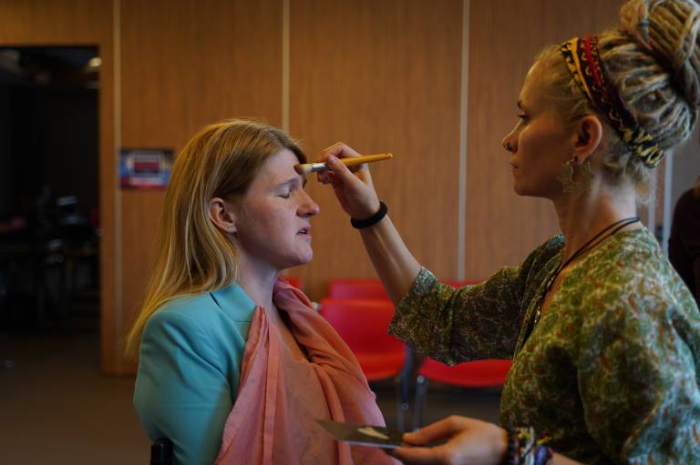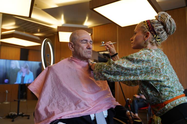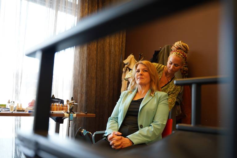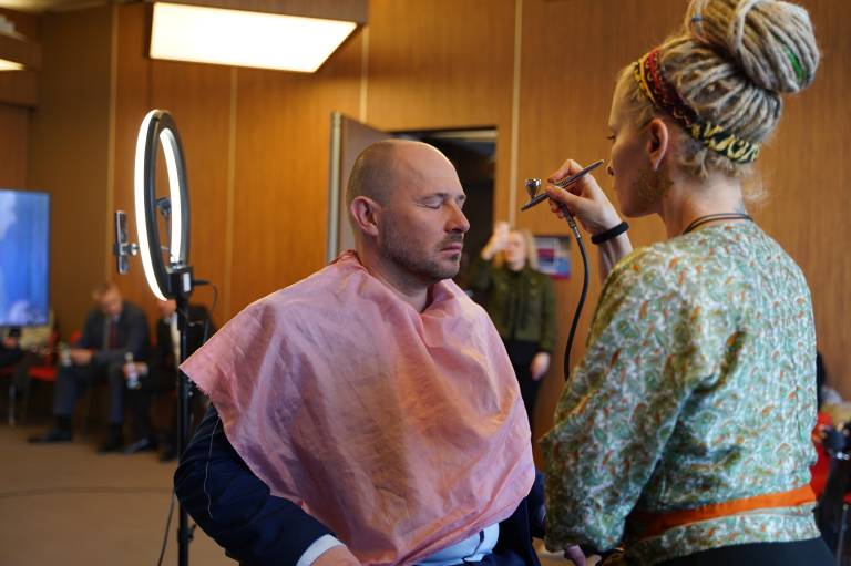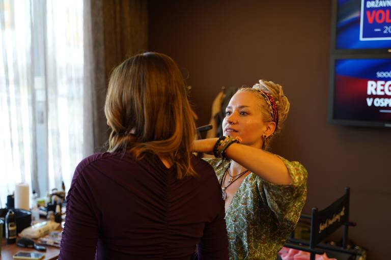Pomemben del priprav se je odvil tudi v garderobi, kjer smo goste pred začetkom oddaje pripravili za nastop pred kamerami. Medtem je tehnična ekipa preverjala zvok, osvetlitev in postavitev kamer, da bo prenos brez zapletov.