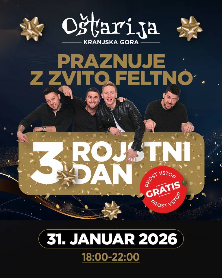 Ob 18. uri bo v Oštariji Kranjska Gora praznovanje 3. rojstnega dne Oštarije z nastopom skupine Zvita Feltna in sproščenim druženjem.