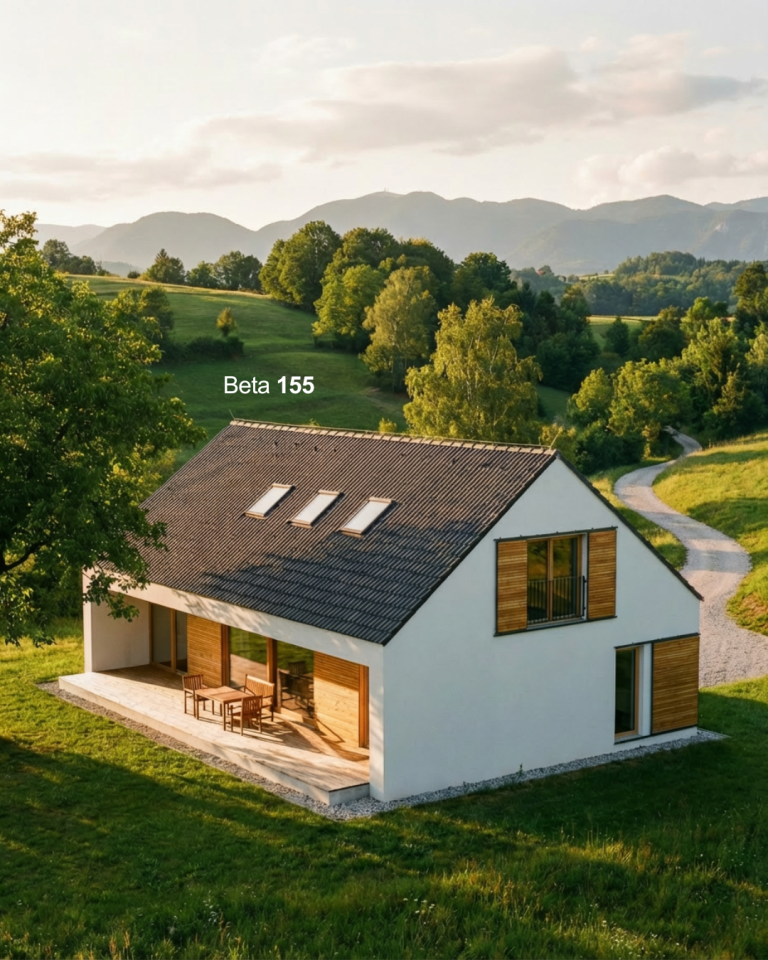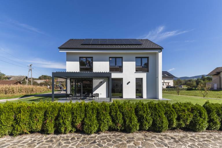 - Izjemna energetska učinkovitost – skoraj nič-energijska hiša s porabo energije pod 15 kWh/m²a (pasivna hiša) zagotavlja nizke stroške bivanja skozi celoten življenjski cikel.