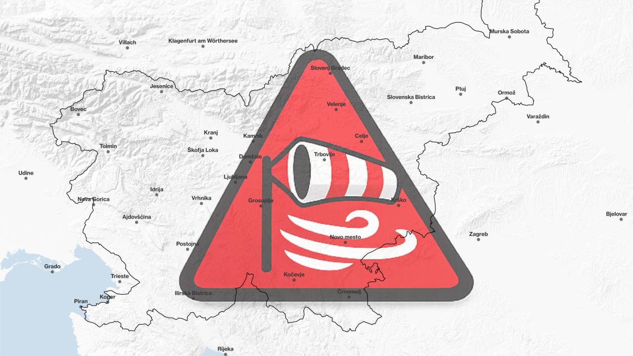Izračuni Agencije Republike Slovenije za okolje namreč kažejo, da bodo sunki vetra ponekod presegali hitrost 100 kilometrov na uro, rdeče opozorilo pa velja severovzhod in severozahod države, in sicer še vso noč in večji del jutrišnjega dneva.