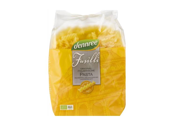 Gre za izdelek Bio svedrci iz koruzne in riževe moke (Fusilli, gluten free pasta) blagovne znamke Dennree. Testenine so pakirane v plastičnih vrečkah z neto količino 500 gramov, z rokom uporabnosti do avgusta 2028 in oznako serije L: 5355L.