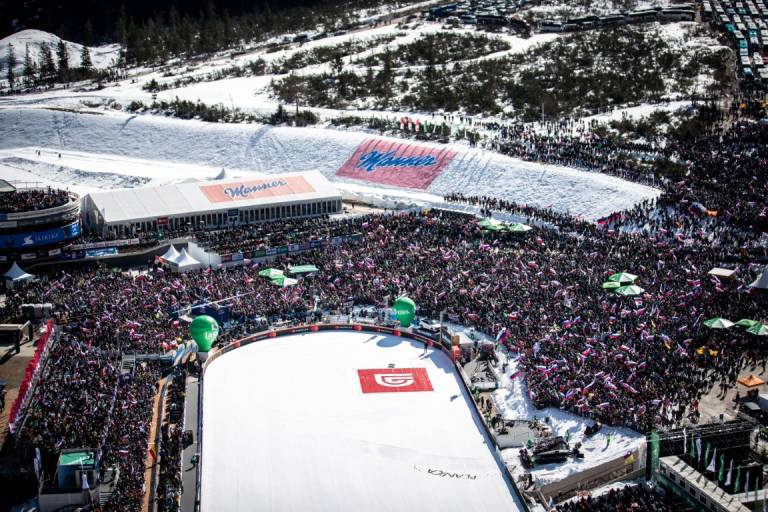 Slovenci Rok Oblak, Timi Zajc, Anže Lanišek in Domen Prevc so pred nabito polno dolino pod Poncami tokrat končali na le petem mestu.