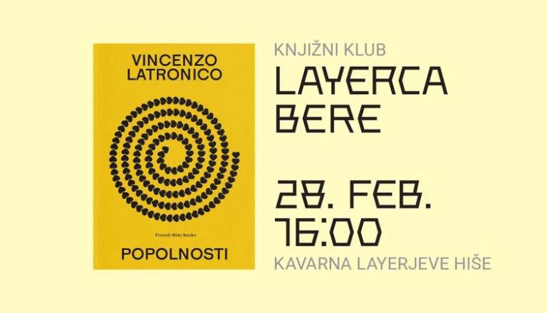Vabljeni na prvo srečanje knjižnega kluba LAYERCA BEre, ki bo posvečeno romanu Popolnosti italijanskega avtorja Vincenzo Latronico. Knjigo lahko kupite v ...